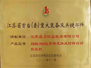 江蘇省首臺(套)重大裝備及關鍵部件獎